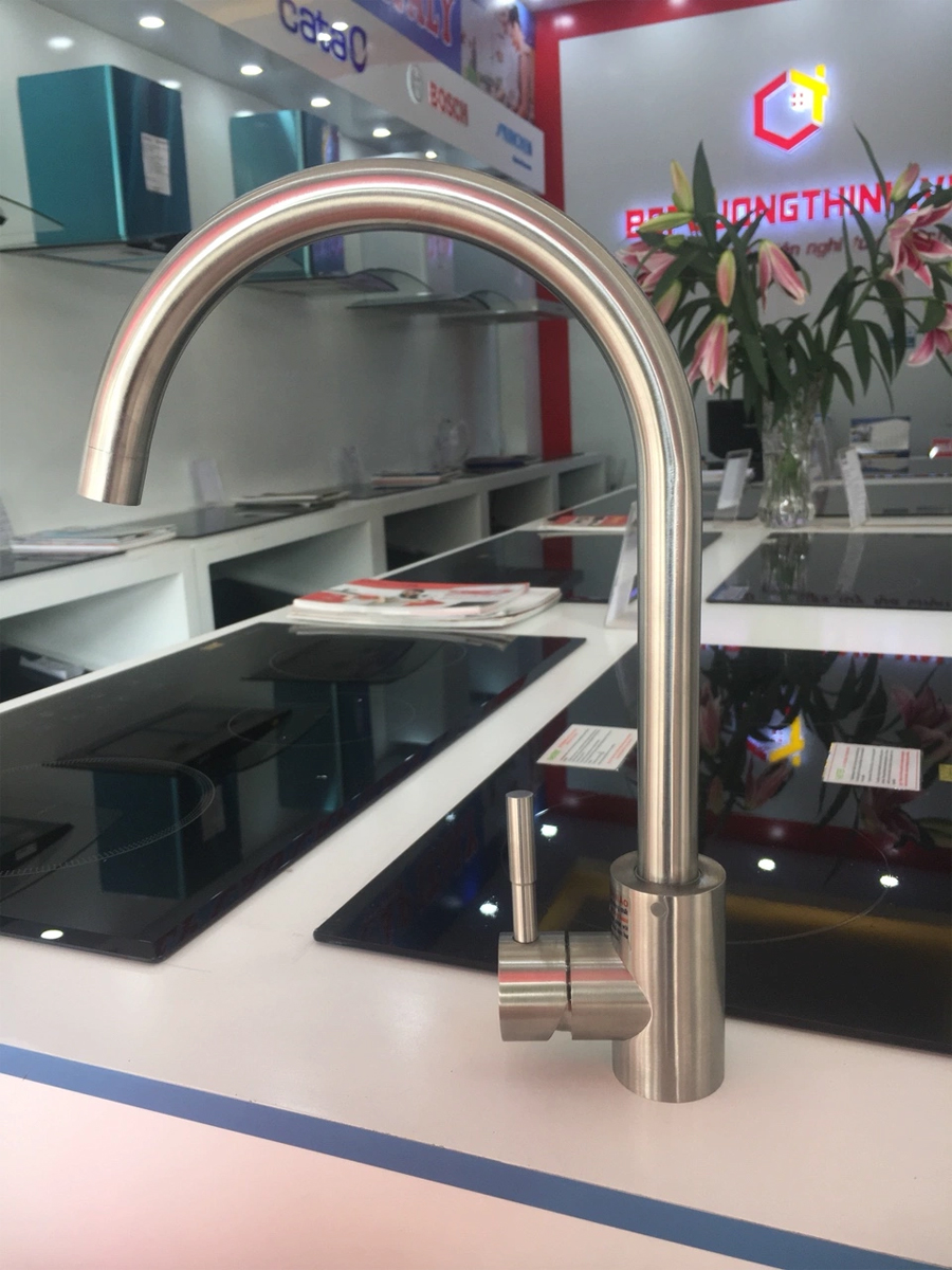 Vòi thiết kế kiểu dáng cổ cứng sử dụng toàn bộ chất liệu Inox SUS an toàn sức khỏe không bị han gỉ trong quá trình sử dụng.