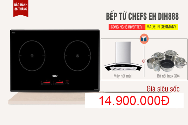 Bếp từ Chefs là sản phẩm đang được khách hàng sử dụng ưa chuộng nhất hiện nay.Đặc biệt với các model bếp từ Chefs EHDIH 888,EHDIH 330,EHDIH 555….đây là model có tính năng inverter tiết kiệm 40% điện năng giúp khách hàng bớt chi phí , giúp bếp hoạt động bền bỉ ổn định.Các model này đều nhận được sự ủng hộ đông đảo lượng khách hàng,Ngoài moldel cao cấp thì tất cả các sản phẩm của Chefs đều có chất lượng ổn định tiết kiệm điện năng, nhờ có tính năng đó mà khách hàng sử dụng rẻ hơn khi đun gas.