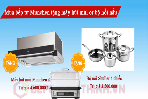 Hiện tại vào dịp cuối năm Munchen có rất nhiều ưu đãi mới phần quà vô cùng giá trị giành cho khách hàng. Khi khách mua bất kỳ moldel bếp của Munchen đều được nhận 1 trong 3 phần quà sau đây: máy hút mùi âm tủ AM692Bộ nồi Munchen 4c hoặc nồi hấp Munchen cả 3 phần quà này đều là những phần quà giá trị và thiết thực với nhu cầu sinh hoạt của chúng ta.